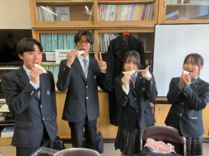 予餞会にてフジパンさんから嬉しいサプライズが! 全校生徒分の「スナックサンドすき焼き味」を差し入れしていただき、昼休みにみんなで美味しくいただきました。 このコラボ商品は、常に挑戦を続ける3年生と、その背中から学んだ下級生がしっ...
